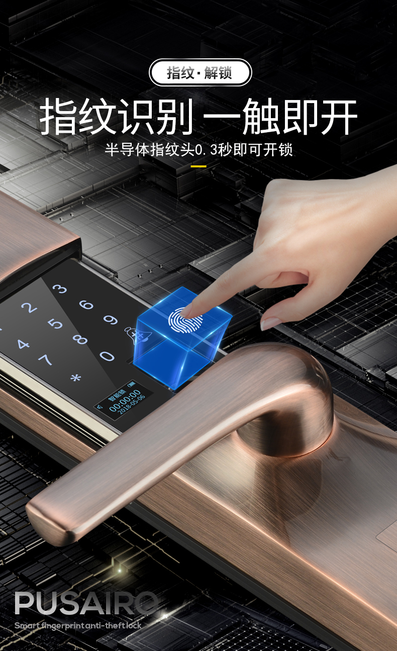 普洱滑盖指纹锁家用防盗门